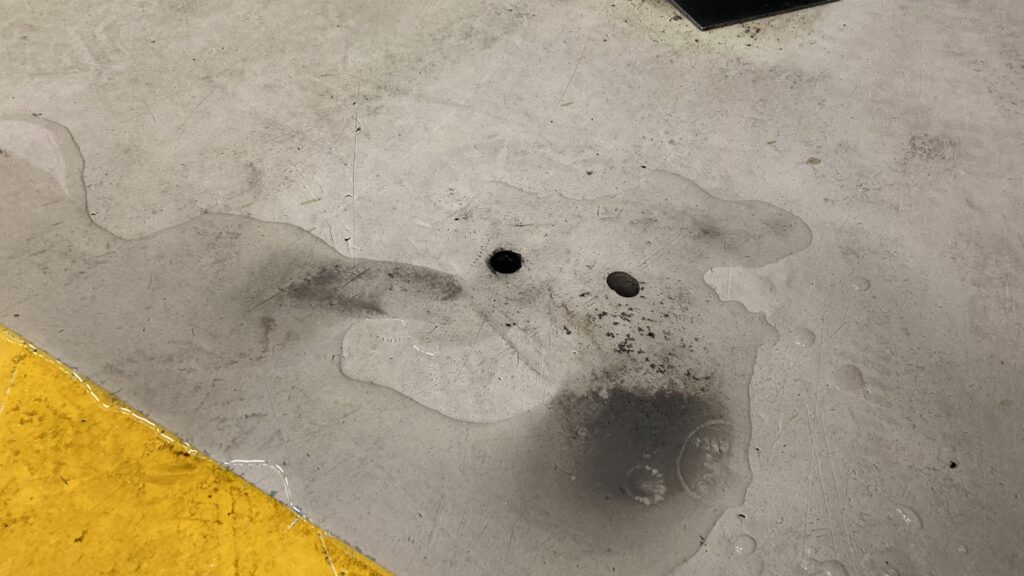 コンクリート床に穴を開けて その下にある地面の様子を確認します