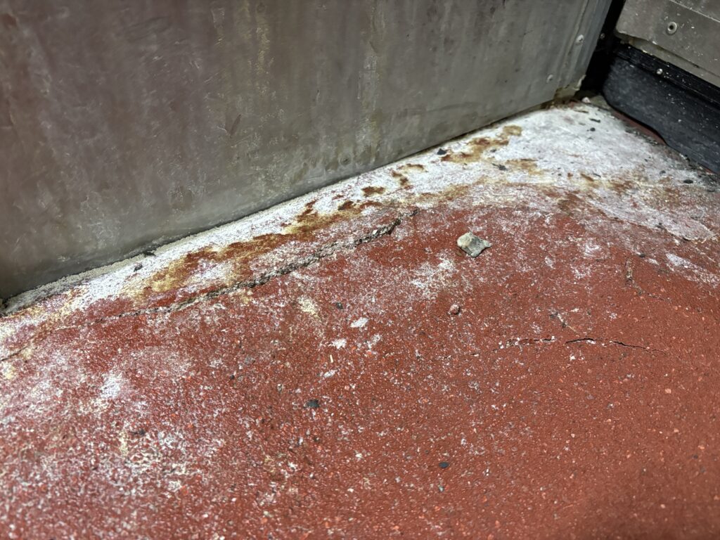 床面のクラックだけではなく、壁にもクラックができます。