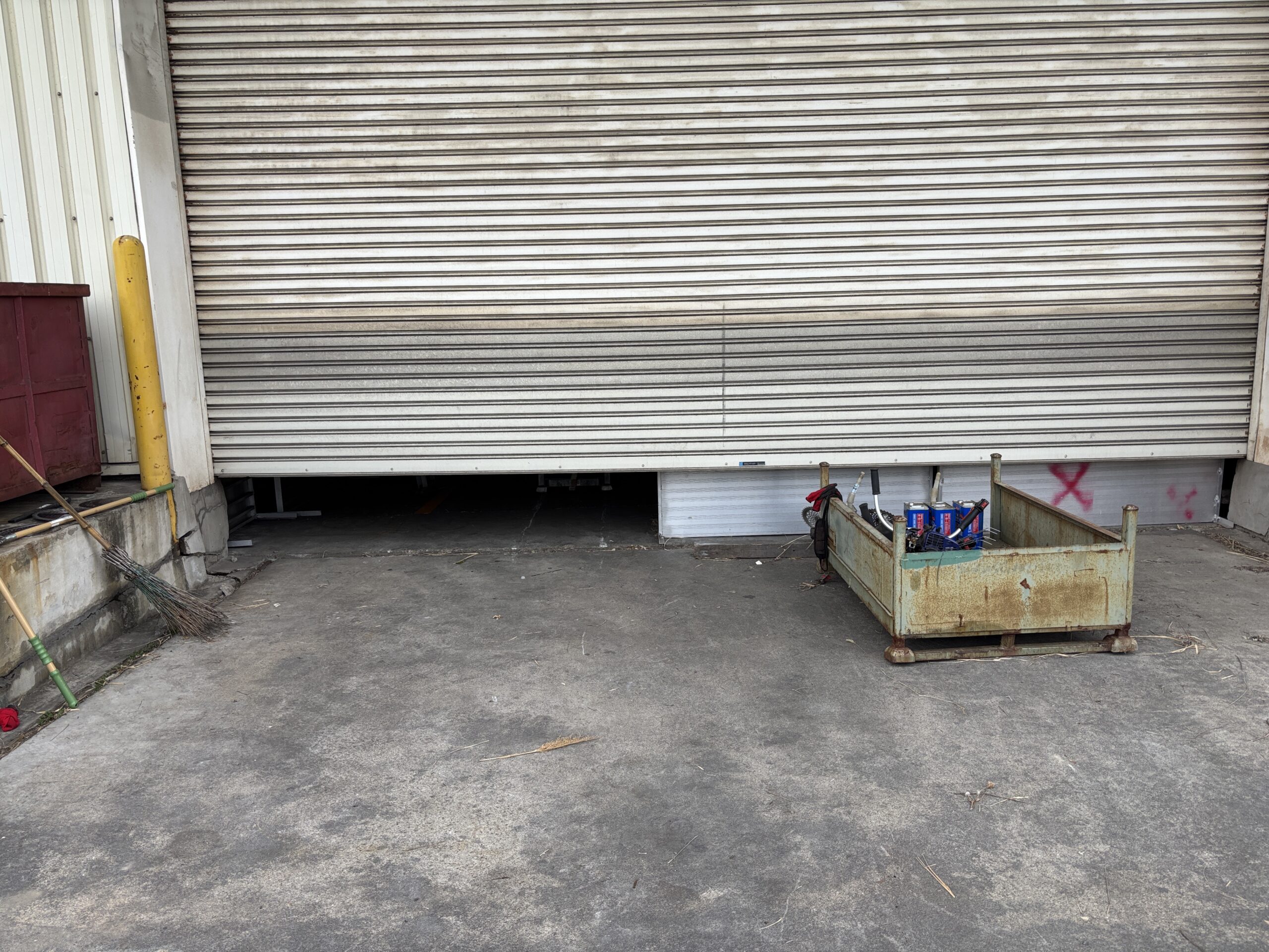 シャッターを1番下まで下げても、沈下した分が開いています。