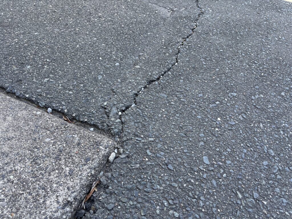 コンクリート部分とアスファルト部分で段差ができています。