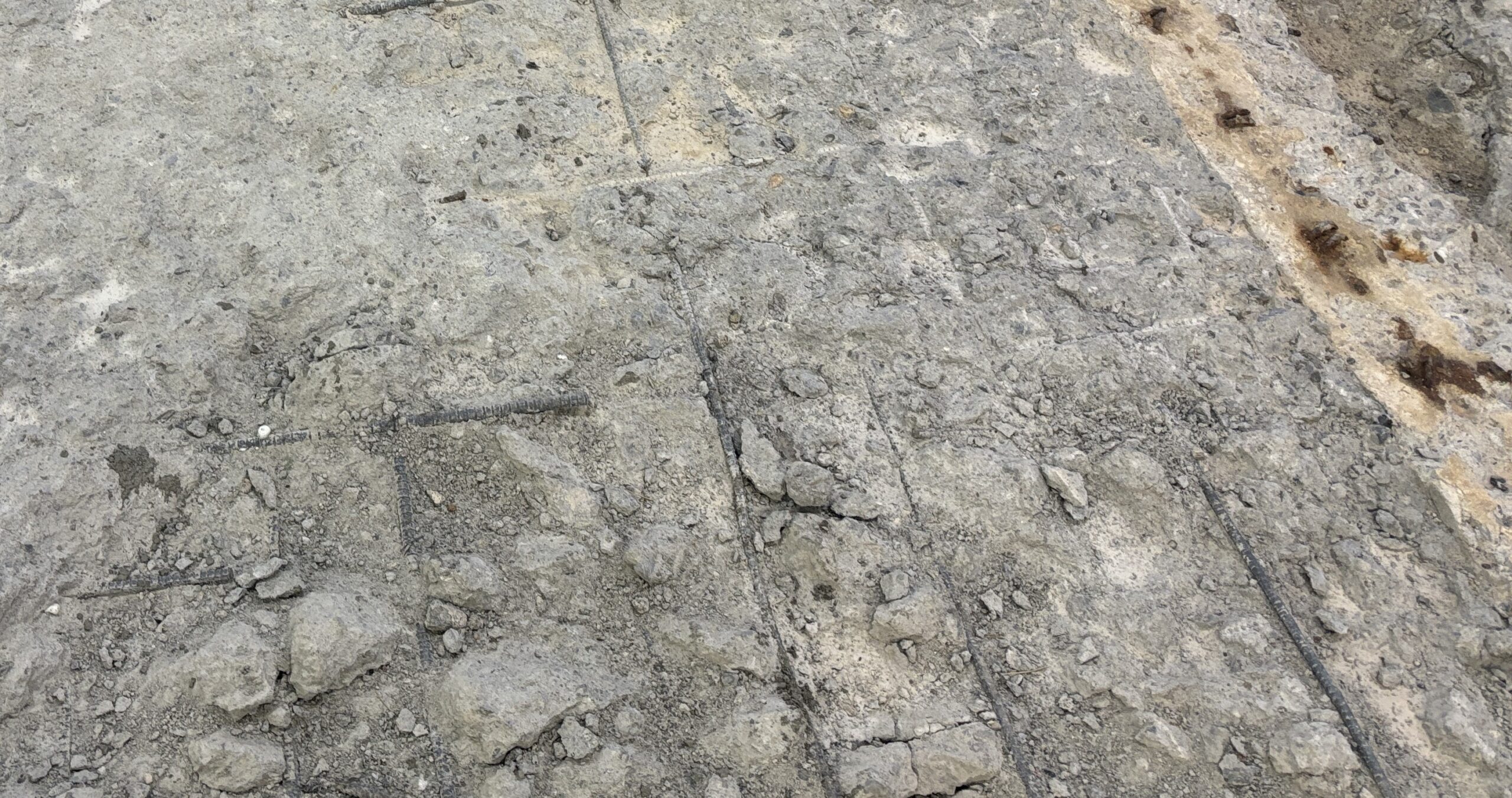 鉄筋は錆びていたり、変形して歪んでいたりと、とてもコンクリート床を支えられるほどの強度がない状態でした。