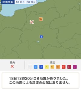 この前の土曜日、4月18日はちょうど長野県に伺っていたため、地震に遭遇致しました。
