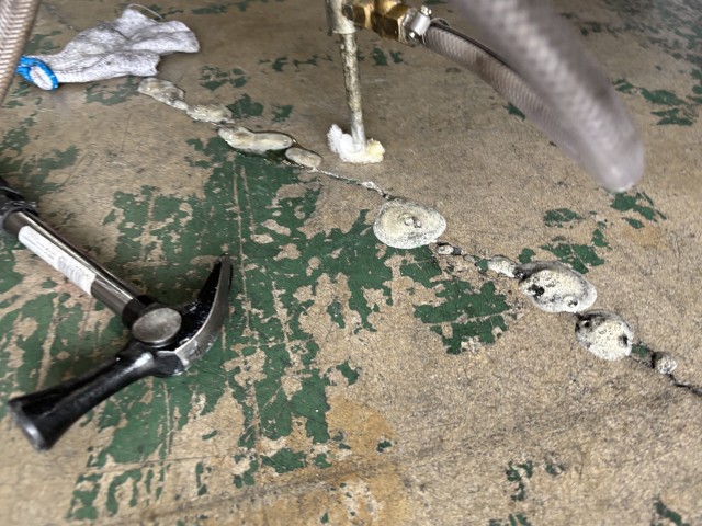 床に機械油が落ちている工場で、よく見にする床下状態。設備周辺の床下に機械油が浸食し、空洞化とともに土壌汚…