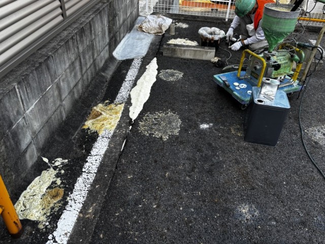 この写真のように クラックや目地から材料が溢れ出る事があります