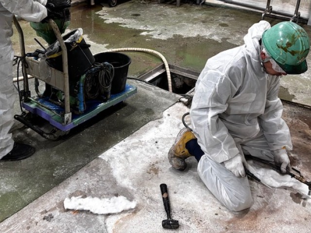 コンクリート床に穴を開けて その下にある地面の様子を確認します