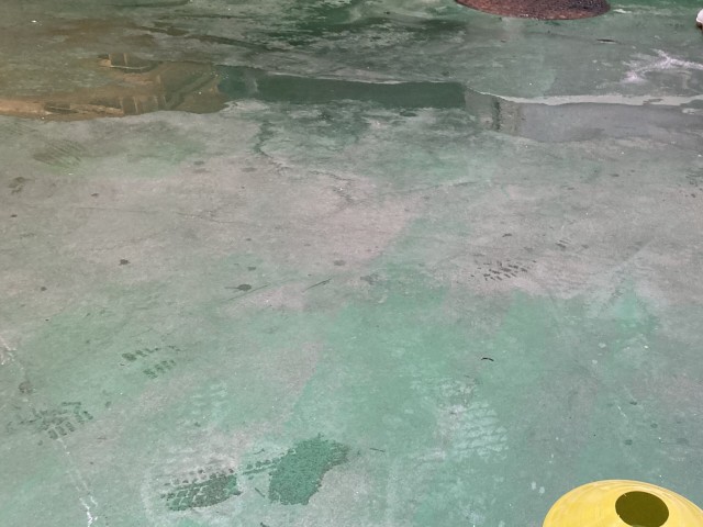 床の塗替え頻度が高く塗料の密着が悪い状況でした