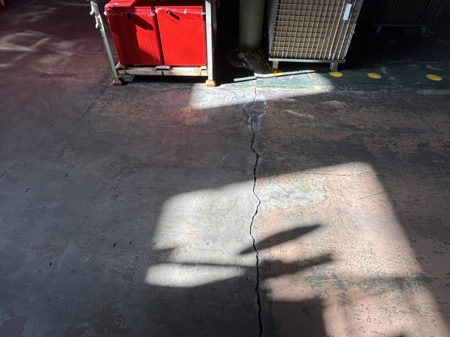 工場様の床を見ると、工場の増築部分とのジョイント部や埋設配管に沿って伸びるクラックを見かけます。
