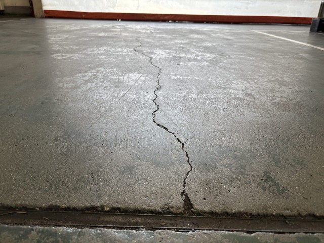 工場の床面でしばしば見られる、へこみや割れ、段差、沈下などの