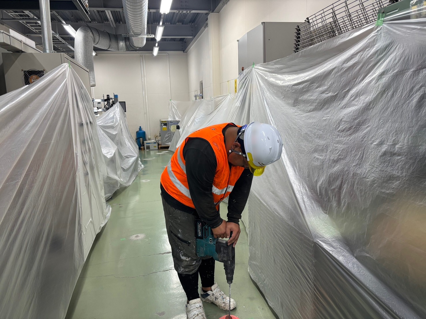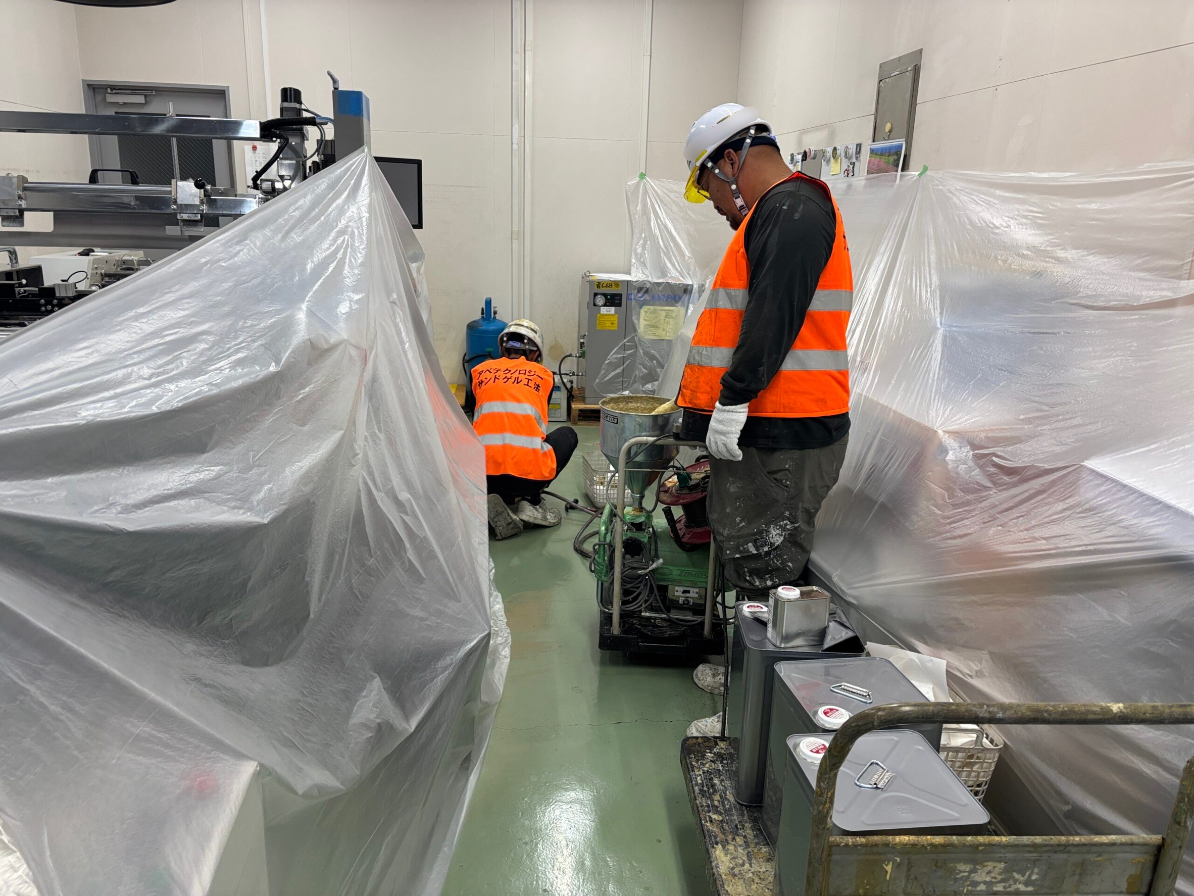 機材や製品などに材料の付着などが起こらないように養生致します。