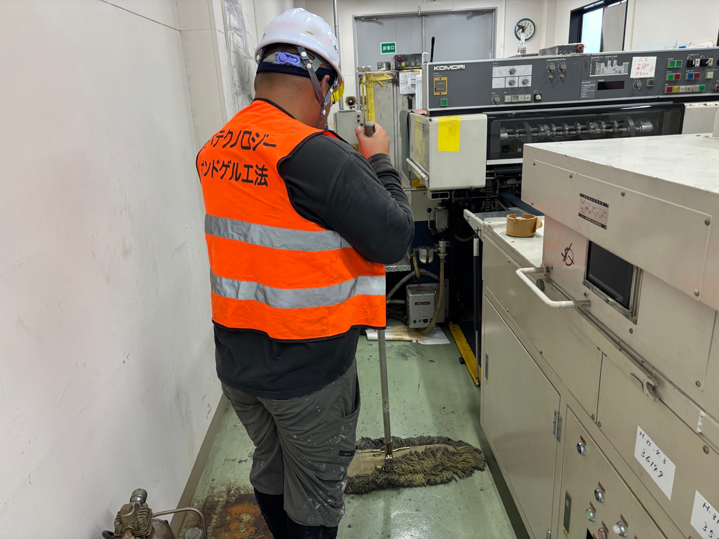 注入後に材料の拭き上げ、ケレン、清掃を行って原状復帰致します。