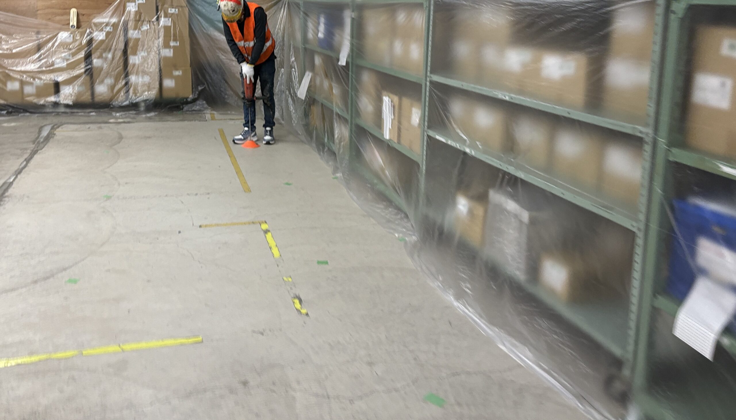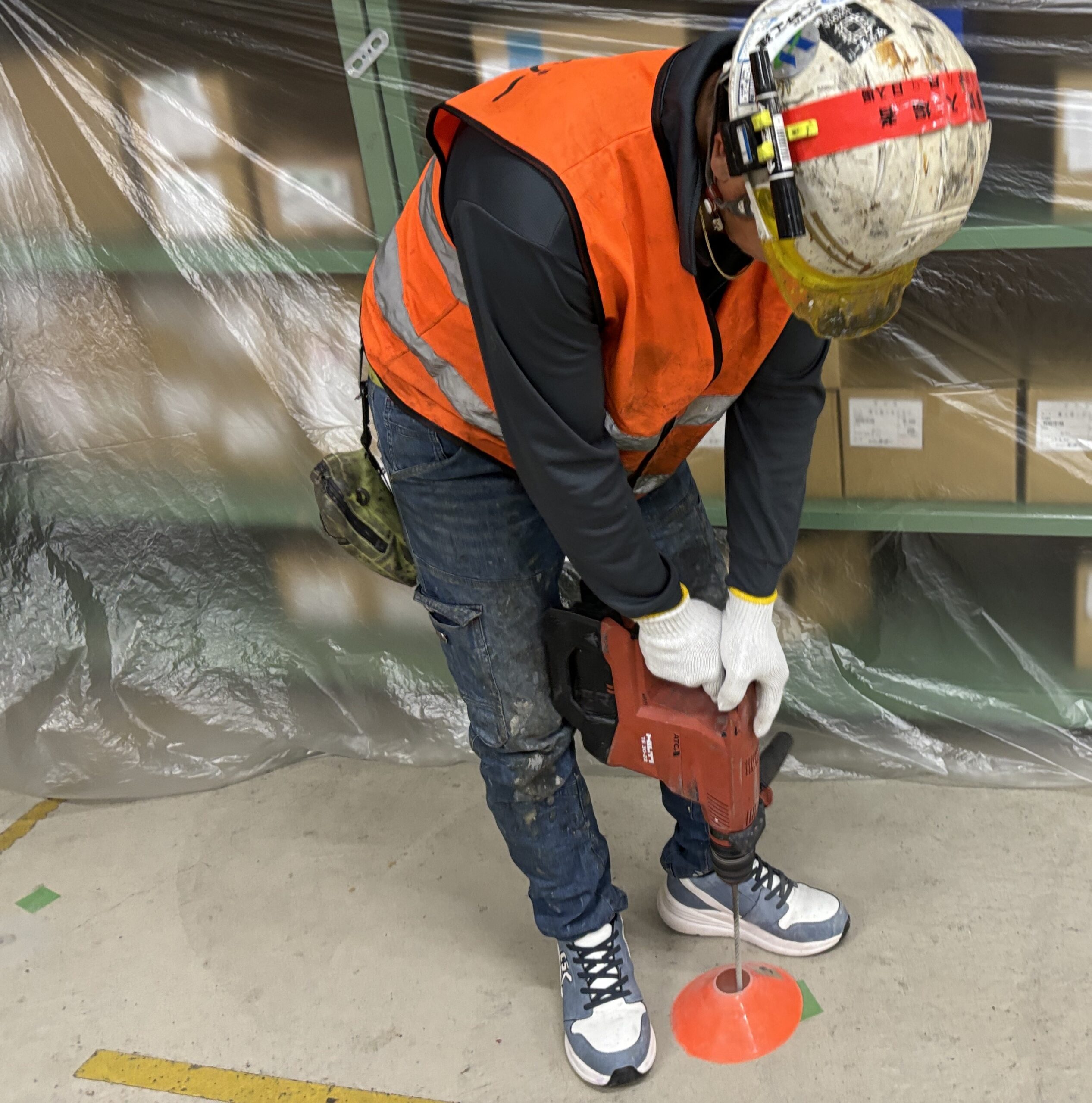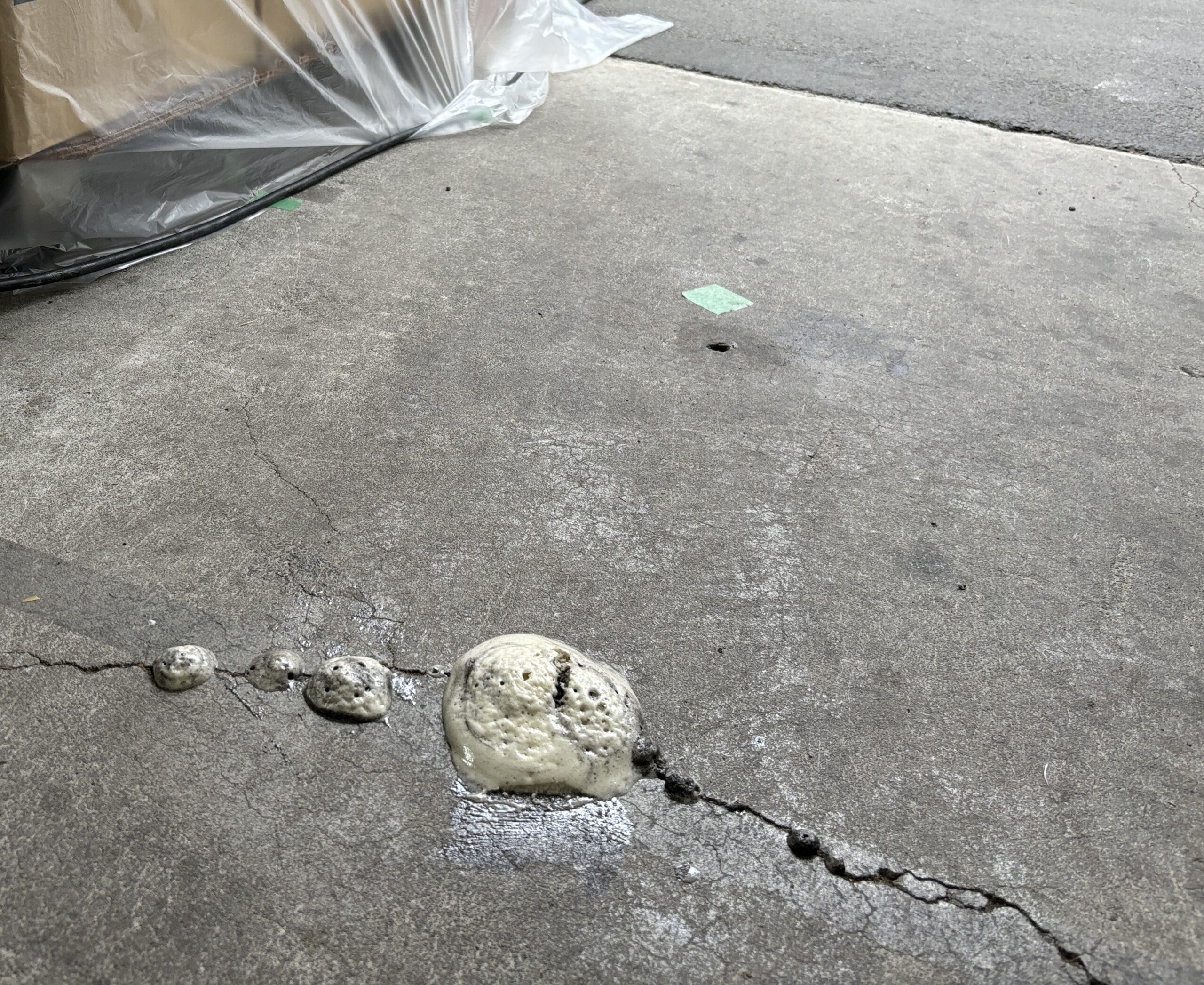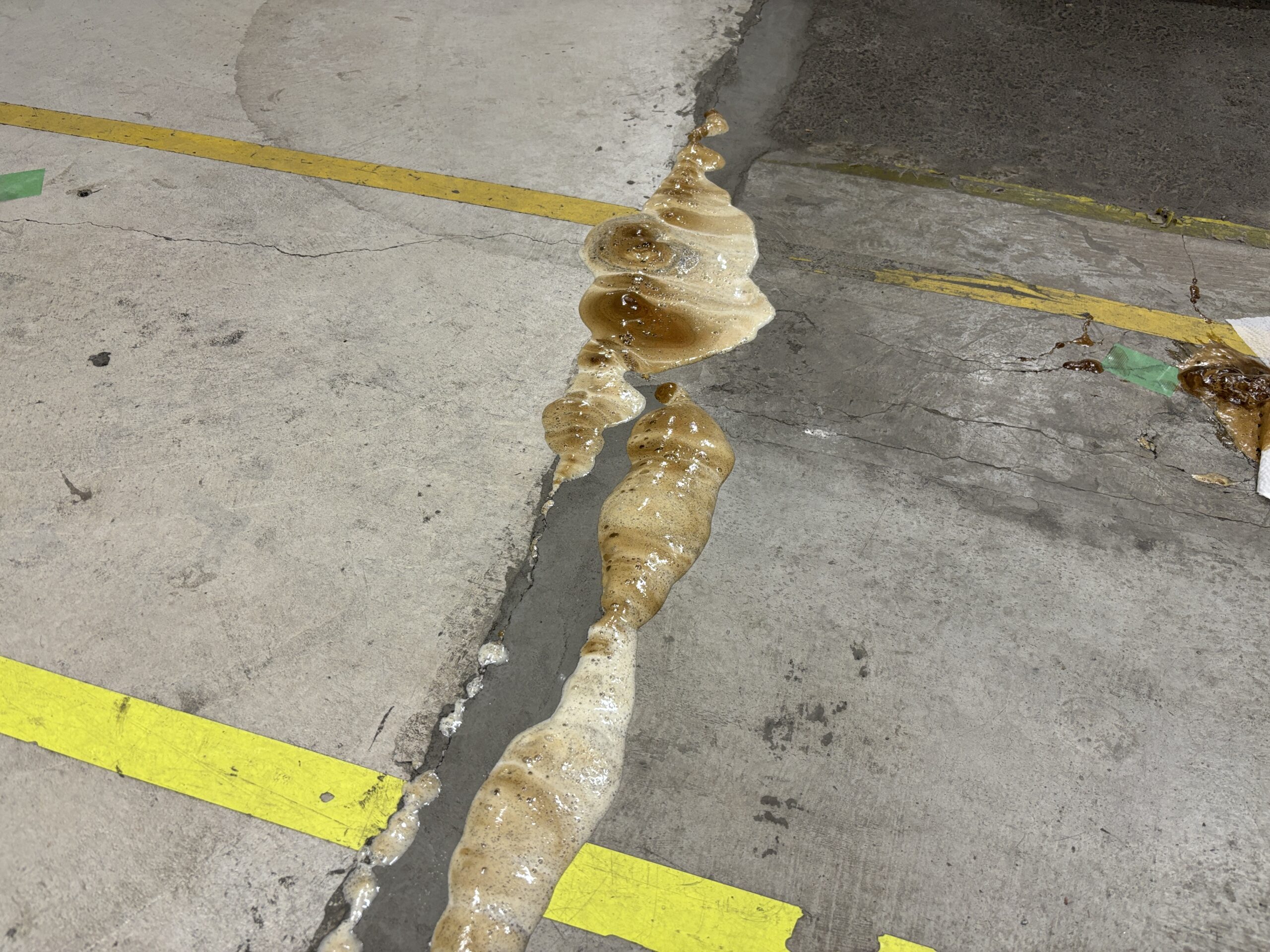 このようにクラックや目地から材料が吹き上がると言う事は、コンクリート床が完全に割れてしまっているという危険な状況だった事を示しています。