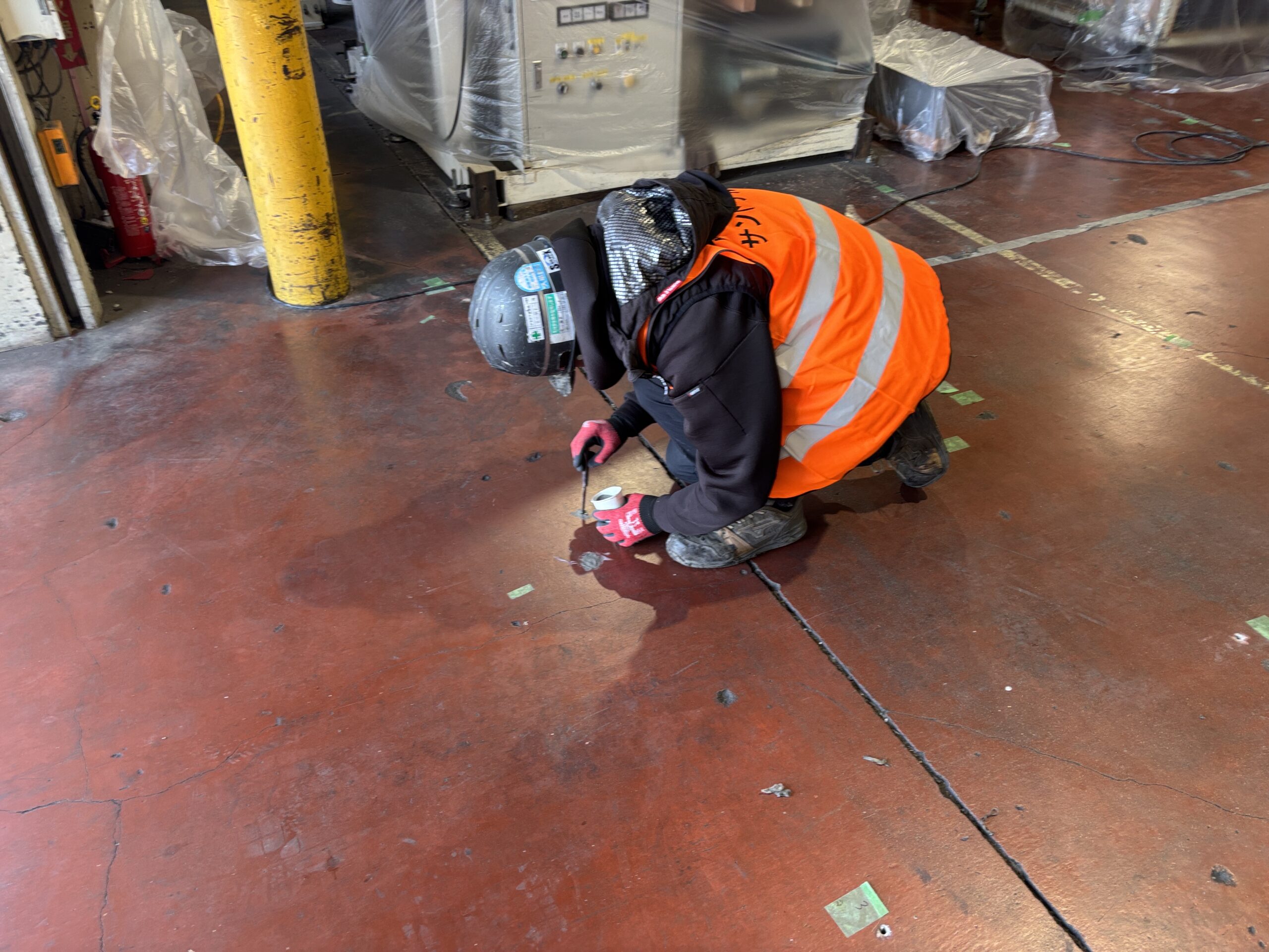 翌日からの作業に支障がないように、速乾性の無収縮モルタルでしっかり孔を埋めて行きます。