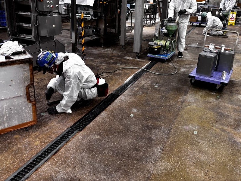 水を多用する食品工場での安全対策床下補強工事
