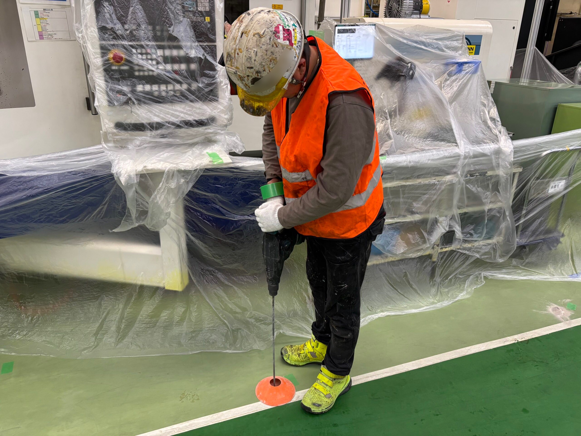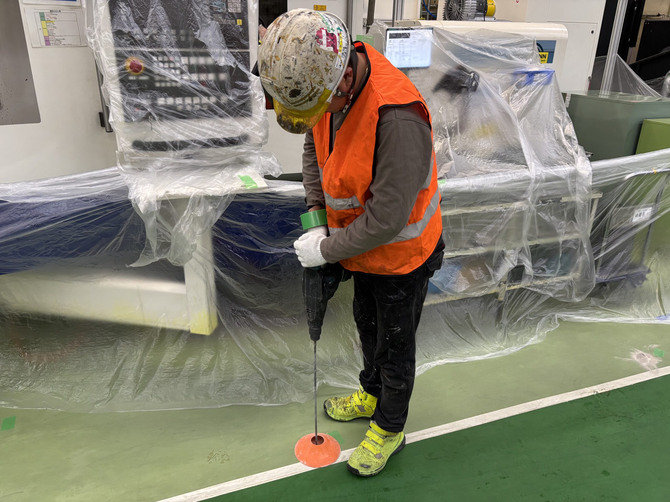 機械が多い分、養生に時間が掛かりますが、ここで妥協はできません。