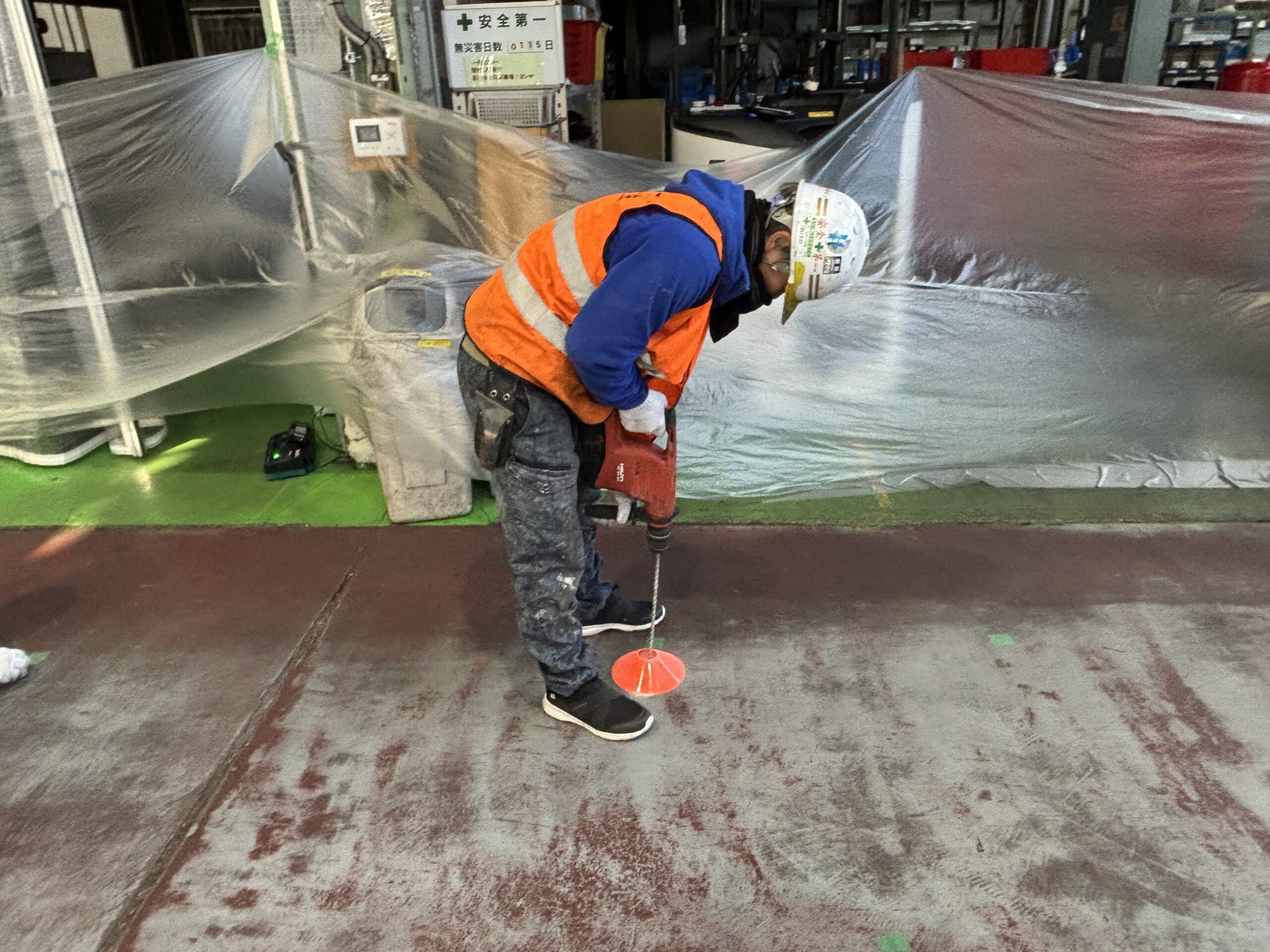 マーキングを行った位置へ削孔を行います。