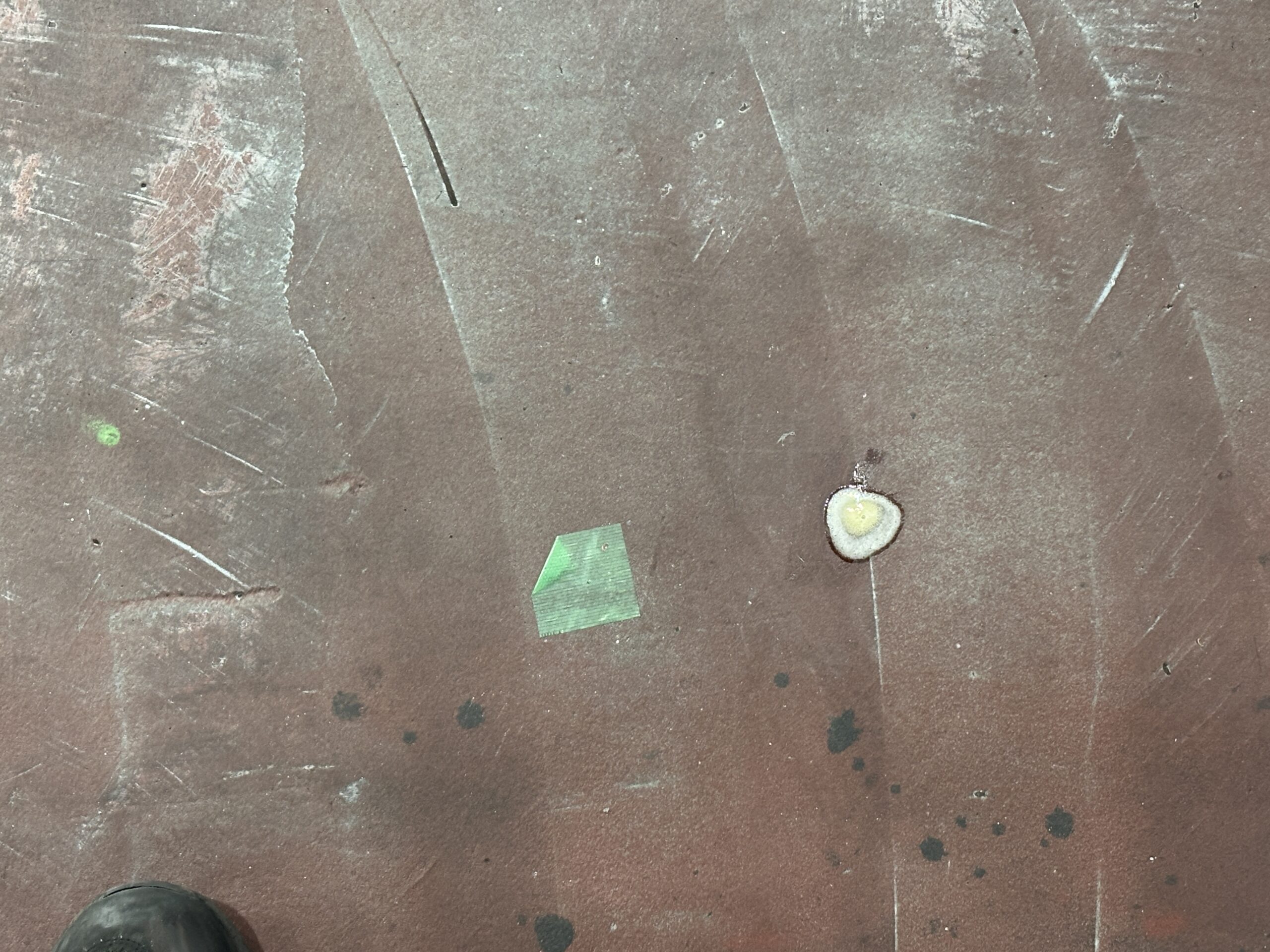 床にクラックやたわみが目立つので、フォークリフトの通る通路部分はしっかり安全を確保したい。