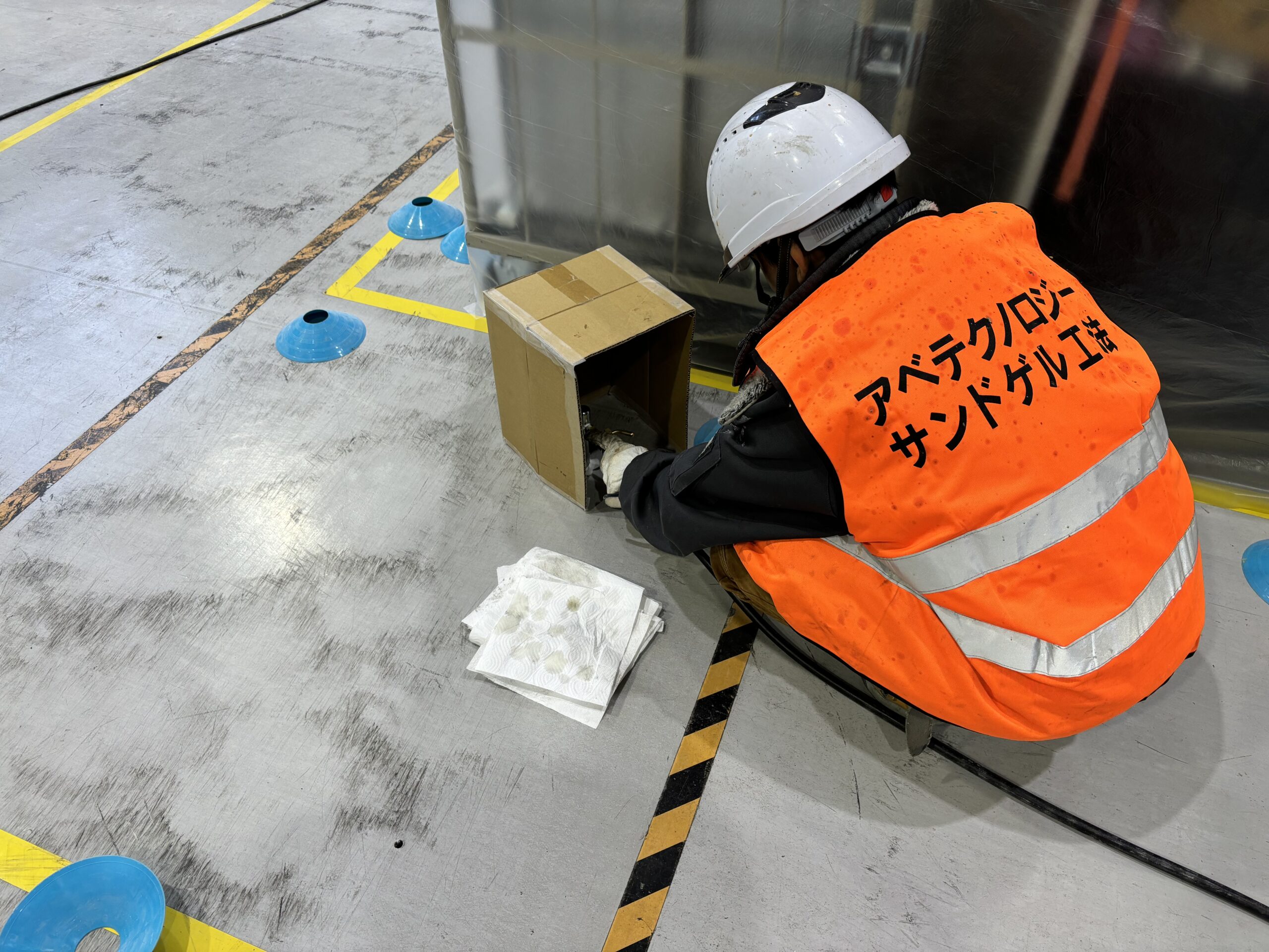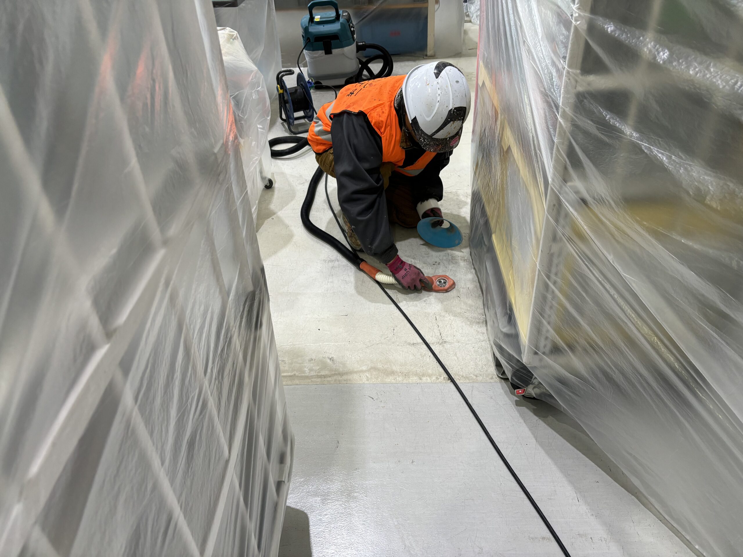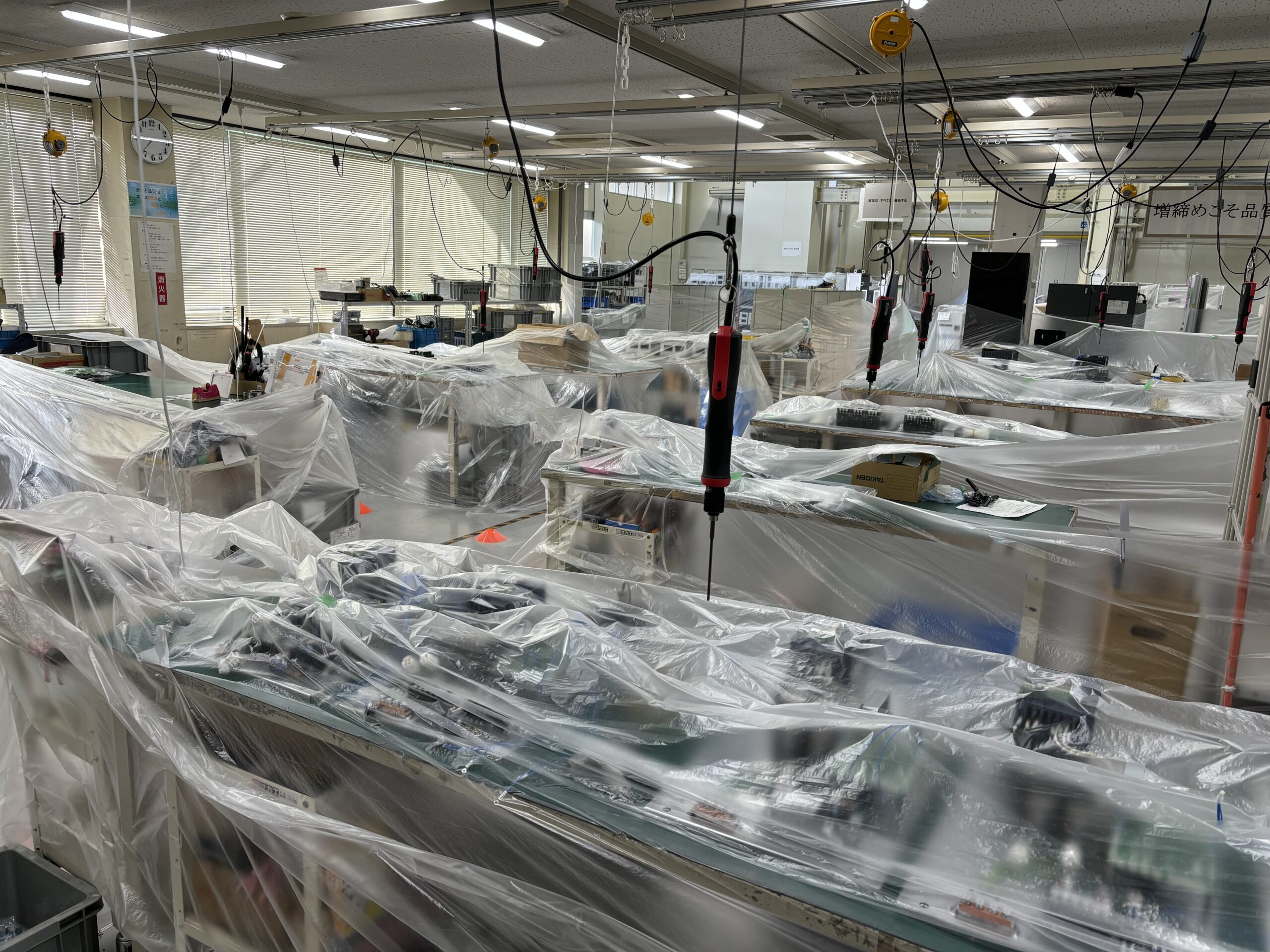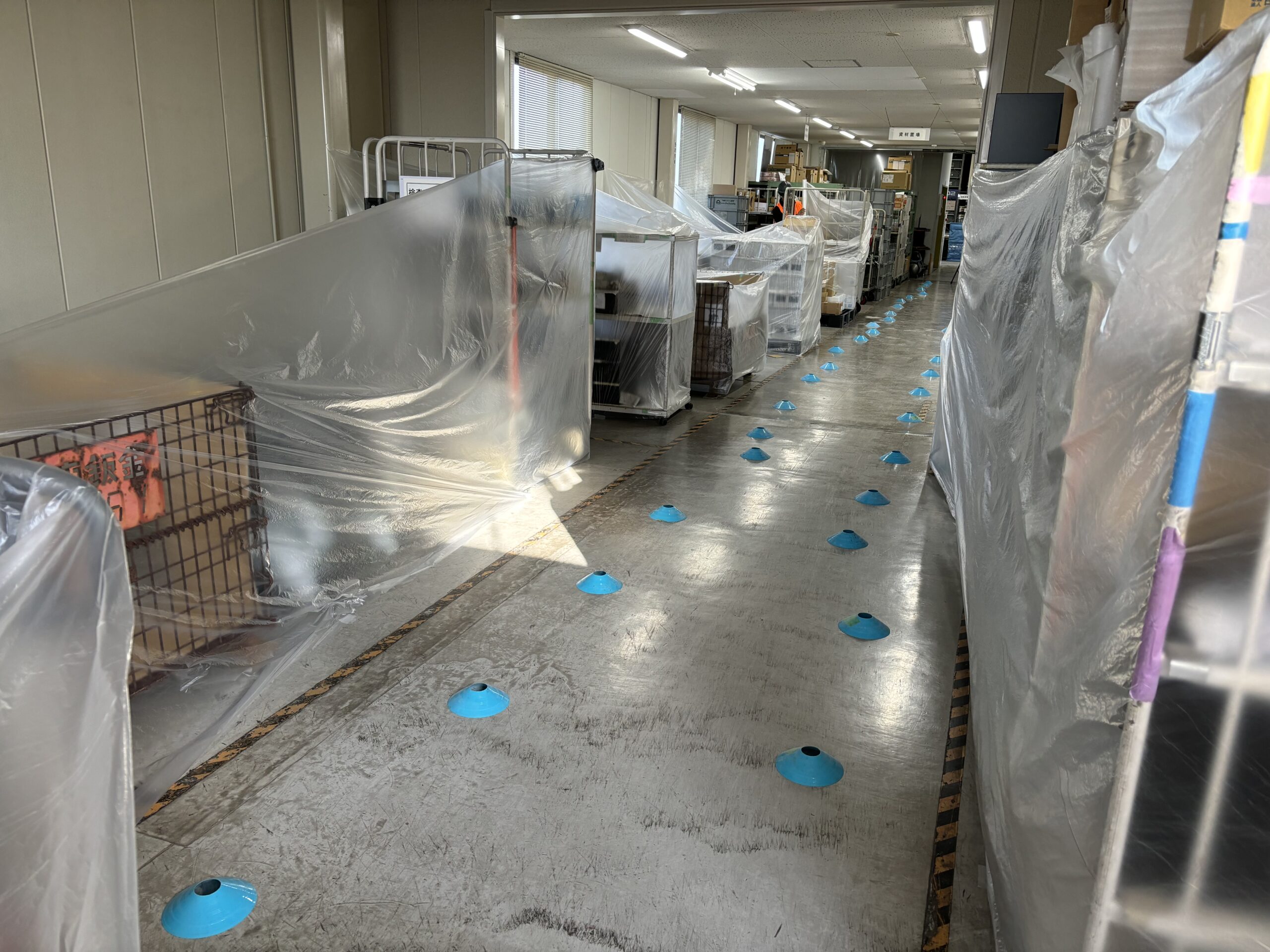 機械・製品のまやりはしっかりとビニールシートで養生します。