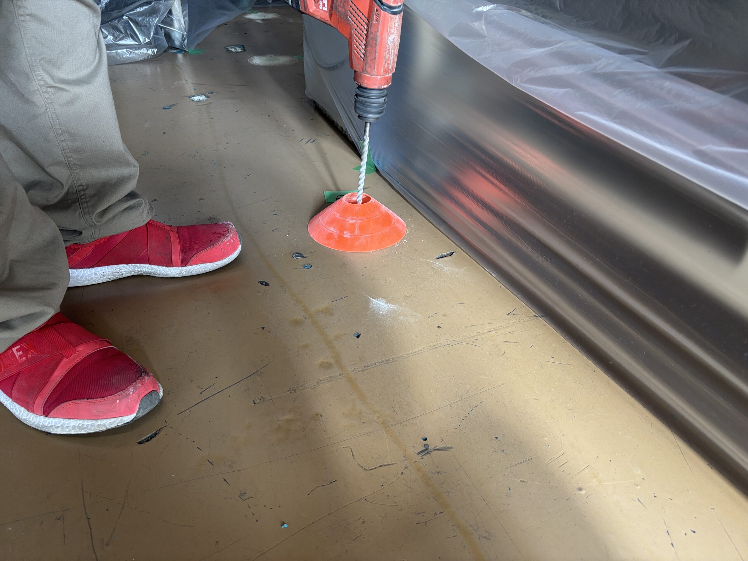 施工エリアの削孔箇所をマーキングしていきます。