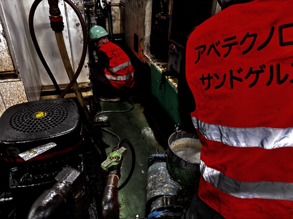 設備際やその隙間も万遍なく樹脂増量して注入しましす。