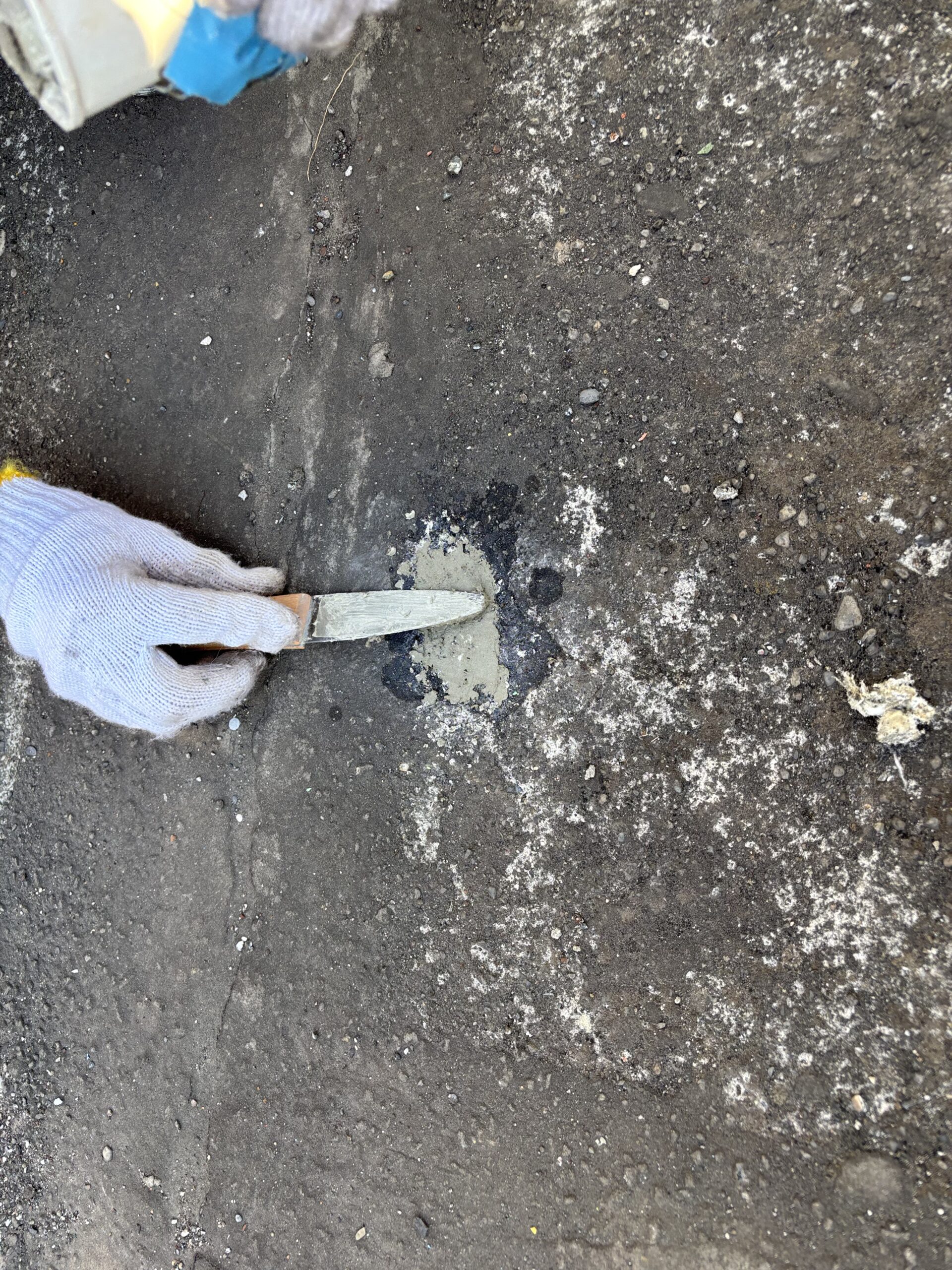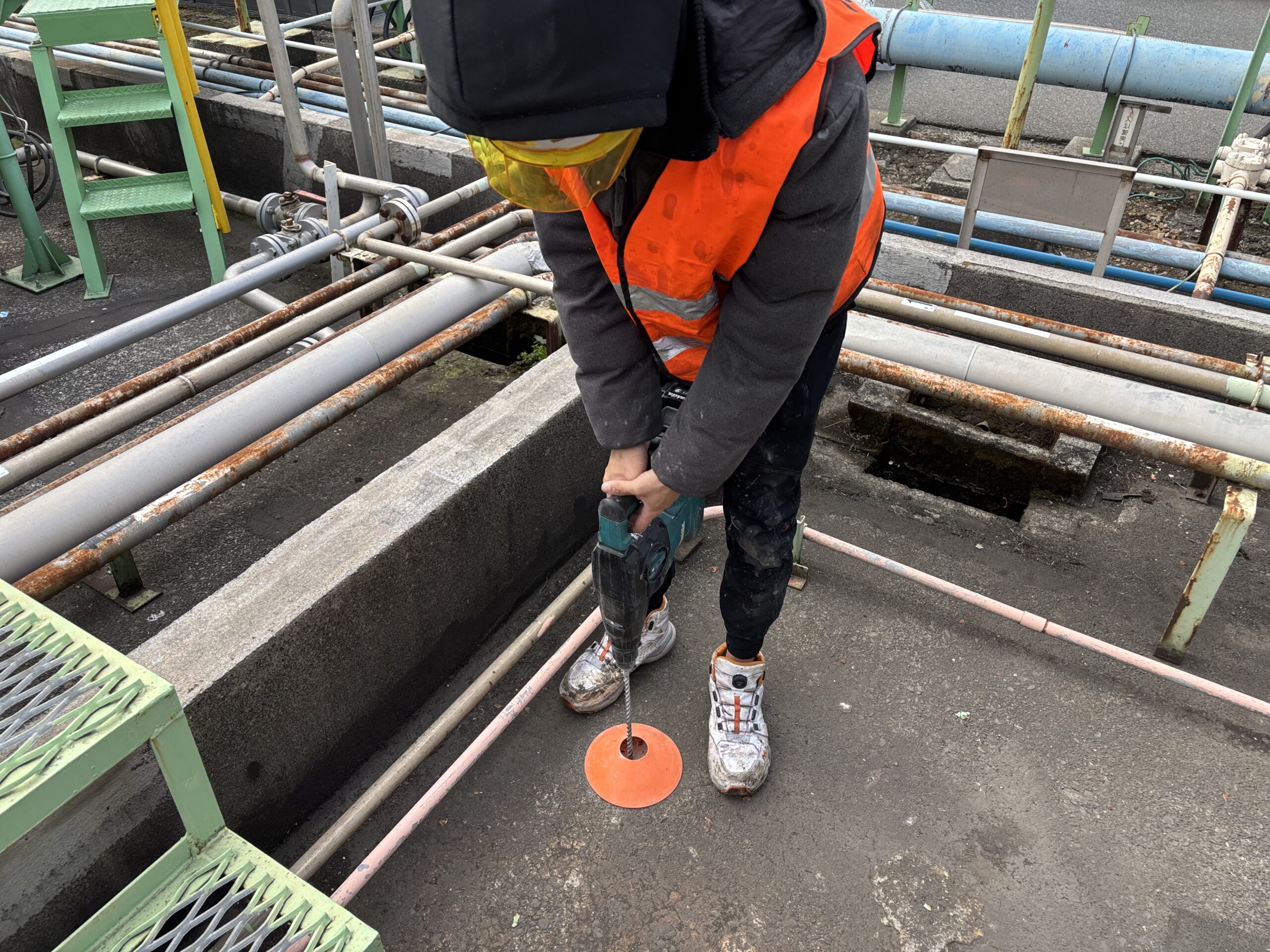 工事前に養生等の準備が終了したら、実際注入する孔を開ける