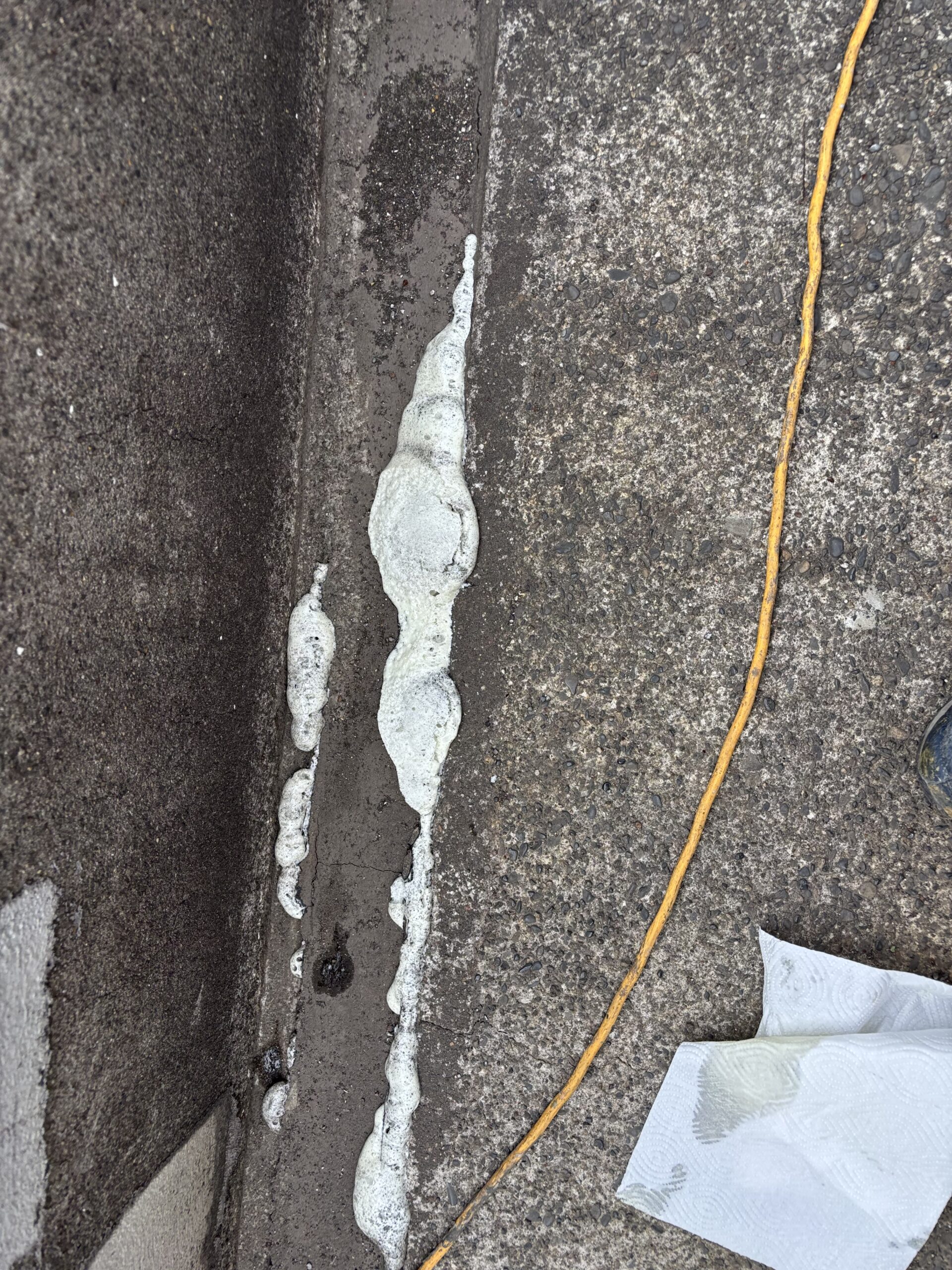 注入時、コンクリートクラックから浸み出しが起こります。